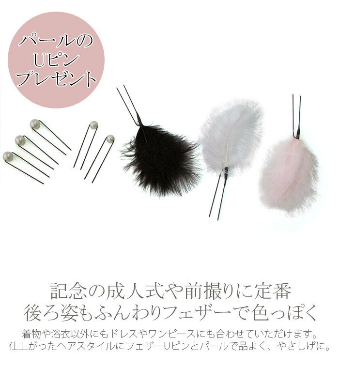 数量限定ですのでお早めに!!ボリュームたっぷりフェザーが目を惹くUピンは和装・洋装問わず使える定番アイテム!さっと挿すだけで簡単にアレンジヘアができる人気の髪飾りです♪