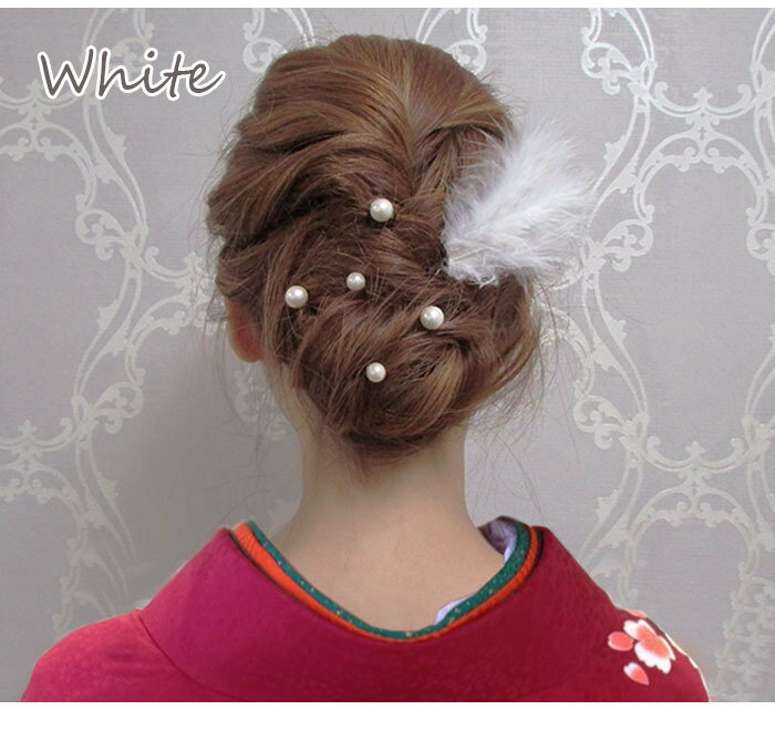 【スペシャルプライス メール便 送料無料】パール Uピン プレゼント☆ フェザー 羽根 マラボー ヘッドドレス ヘアアクセサリー 髪飾り ヘッドアクセ ウェディング パーティー 結婚式 披露宴 ブライダル ウエディング 前撮り ドレス 和装 着物 浴衣