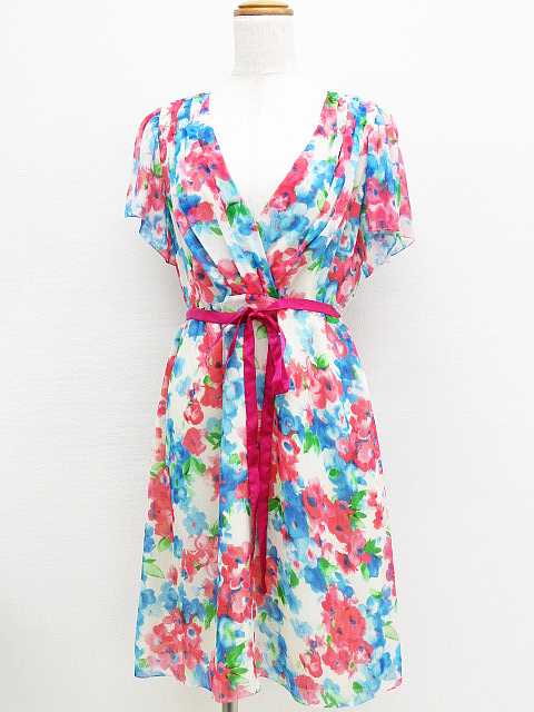 チェスティ Chesty ワンピース チュニック 半袖 ひざ下丈 カシュクール フレア シフォン 花柄 リボン カラフル 1 春夏 レディース 【中古】【ベクトル 古着】 170204 ベクトル店ブランドチェスティ Chesty表記サイズ1 ※Sサイズぐらいと思われます。