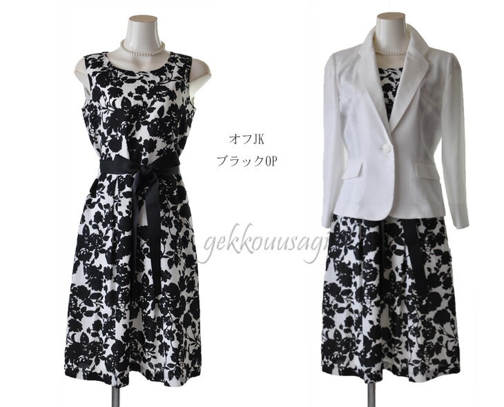 麻感覚素材 洗えるスーツ 定価の80%off 楽天最安値に挑戦 あす楽 9号 11号 13号 15号 七分袖テーラードジャケット&ウエストリボン花柄ワンピーススーツ セットアップ 美シルエット フォーマル 着回しサマースーツ ネイビー オフ 159jk-163op(am8-4)