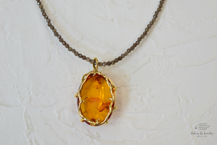 北欧リトアニア・ポーランドからやってきた琥珀に mimaデザイナーズ工房で飾りが施されたペンダントです。
